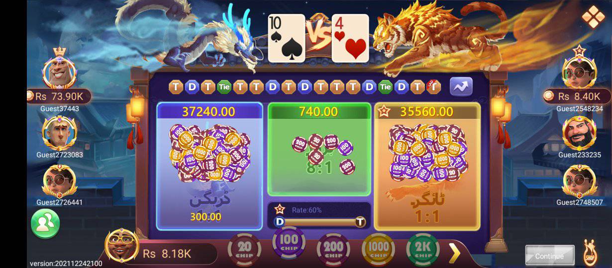 A fast-paced card game where you choose whether the dragon or the tiger wins. It is simple to understand and exciting to play.